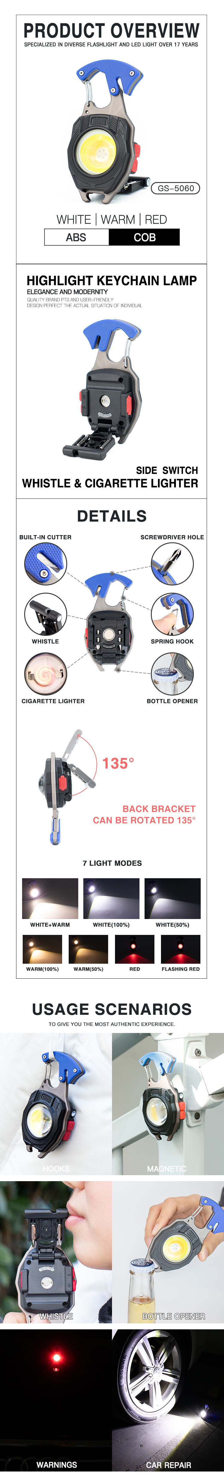 This keychain work light is ultra-portable with powerful LED illumination. It features multiple lighting modes, durable construction, and a rechargeable battery. Integrated tools and a user-friendly design make it perfect for everyday tasks and emergencies.