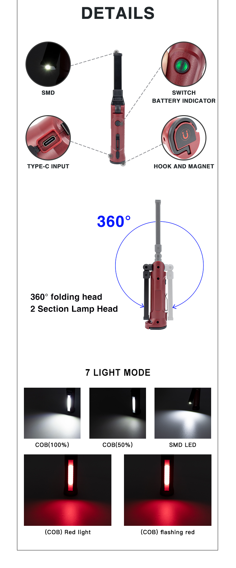 portable folding work light magnetic light rechargeable car repair storehouse working light