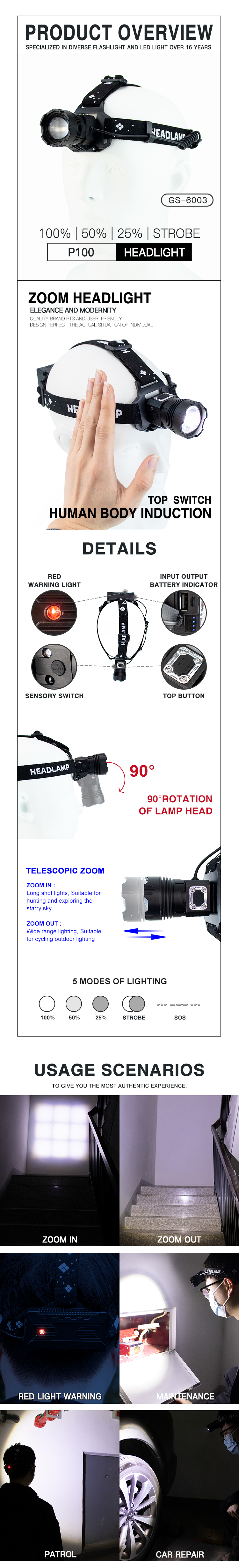This rechargeable headlamp is a compact, durable lighting solution with a powerful LED beam. It features easy zoom adjustment, USB rechargeability, and touchless control. Perfect for outdoor activities, work, or everyday tasks, it offers reliable, hands-free illumination.